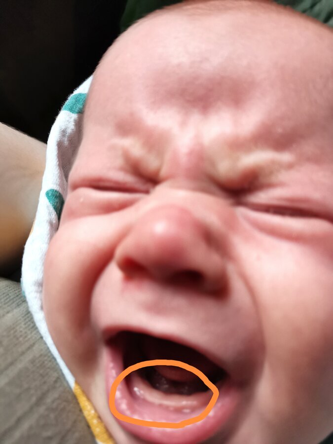 Слюни стали течь. Я особо не смотрела, но вижу, что десна не припухла, при этом есть две белые точки.