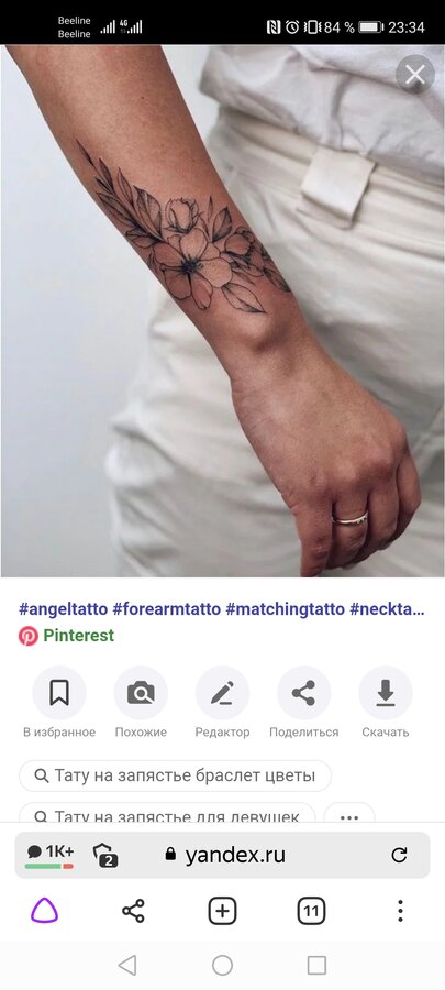Да у меня уже три татуировки есть, одну бы я конечно свела - ошибка молодости на пояснице, надо вот добраться как-то. Ещё одна у меня на затылке иероглиф и одна надпись на предплечье, а вообще я рукав хочу, без заливки - но это мечта несбыточная в браке 😟сейчас бы надпись сделала на запястье.