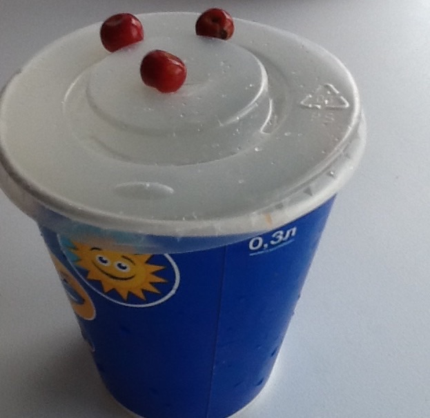 1. Понадобится бумажный стакан с крышкой и ранетки или фасоль.