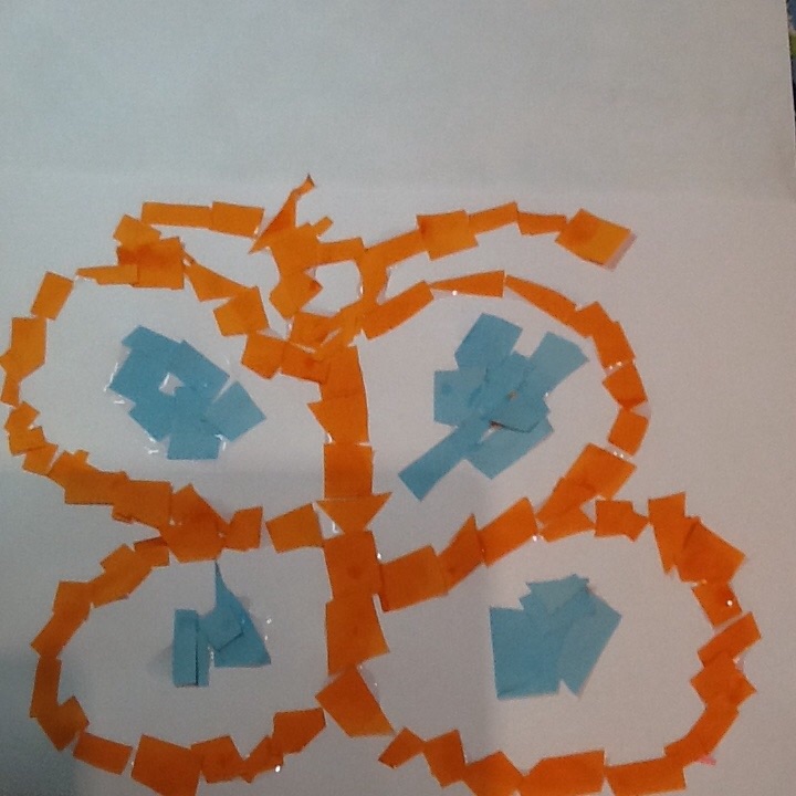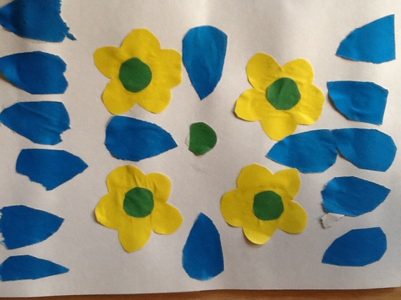 1. Под руководством взрослого делаем коврик: цветок сюда, листок давай так.