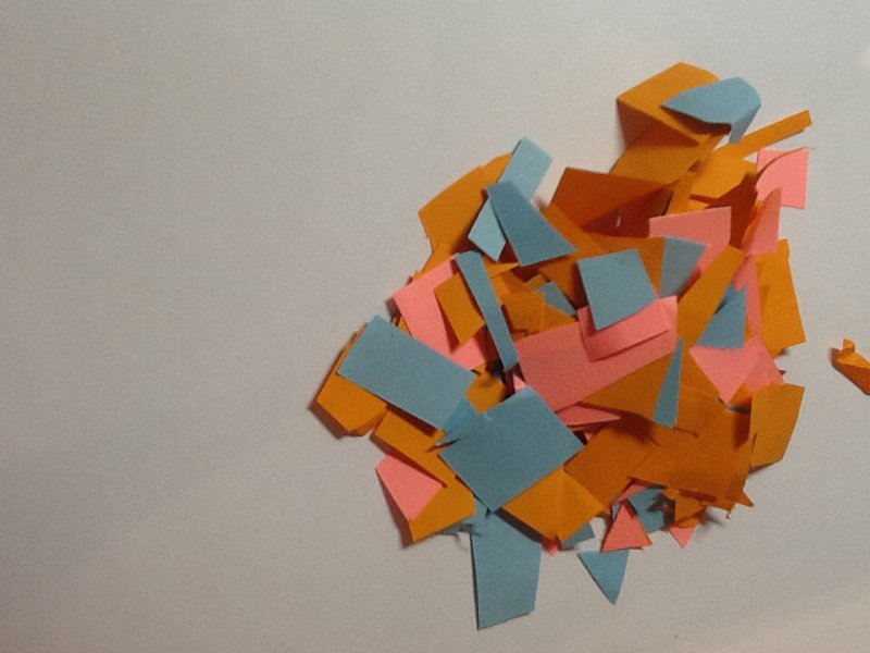 Руками наклеивать фрагменты может быть неудобно. Предлагаю следующую технику: толстым слоем клея рисуем контур. Берем квадратик, кладем рядом с клеевой полосой и аккуратной двигаем на место жесткой кисточкой. |