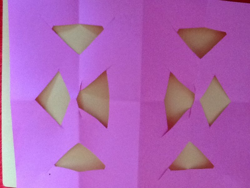 2. Складываем в несколько раз, вырезаем дырочки, как в новогодних снежинках.
