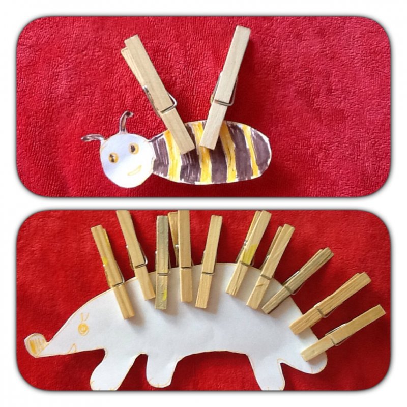 2. Либо говорим, что нужно добавить фигурке, либо предлагаем догадаться, либо сначала показываем контур, крепим прищепки, дорисовываем, радуемся, что получилось. |