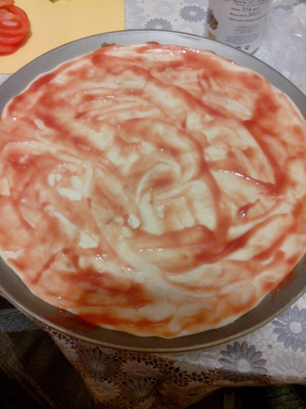 Всю неделю следила за ФМ, но в командировке сейчас, только в выходные семью увидела и пиццей решила порадовать :give_heart: . Тесто всегда делаю одинаково, ингридиенты вымеряны, поэтому оно получается мягким, пышным и хорошо тоненько раскатывается.