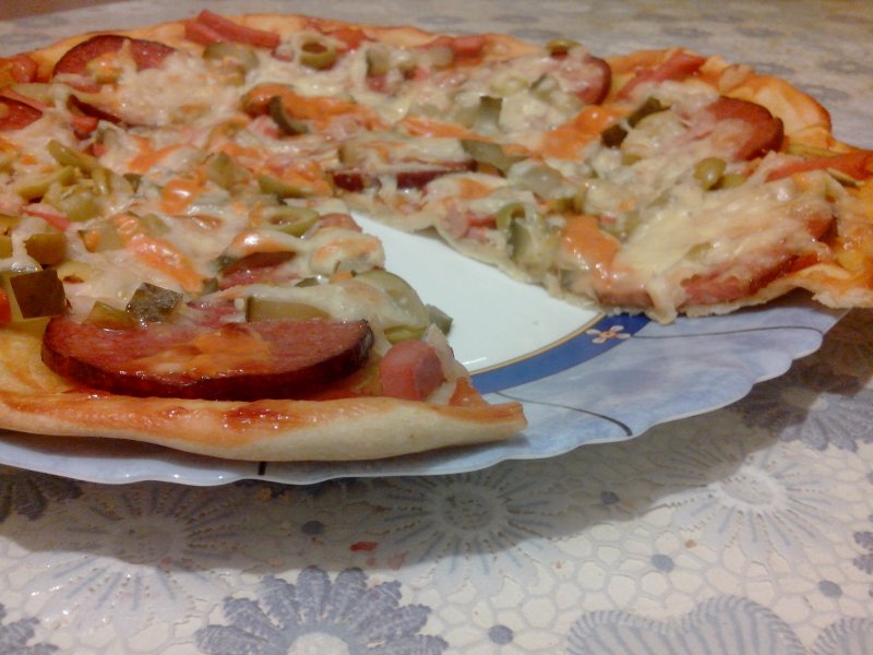 Ну наконец-то и я сегодня сделала пиццу. До этого пробовала много всякого теста, нашла это, супер простецкое, но получается очень вкусное и тоненькое.