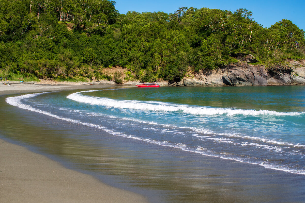 Первая стоянка была в бухте Березовая. Она покорила нас невероятной красотой прибоя