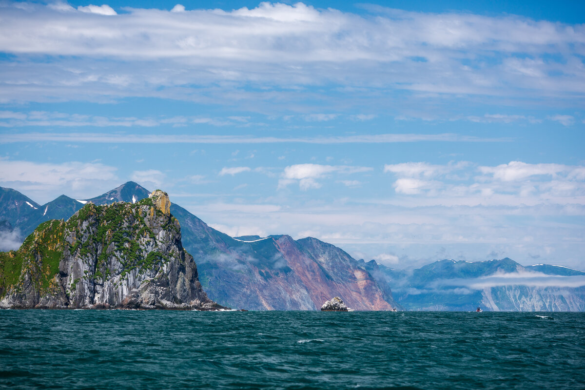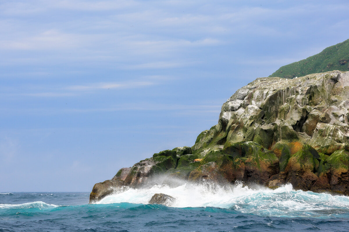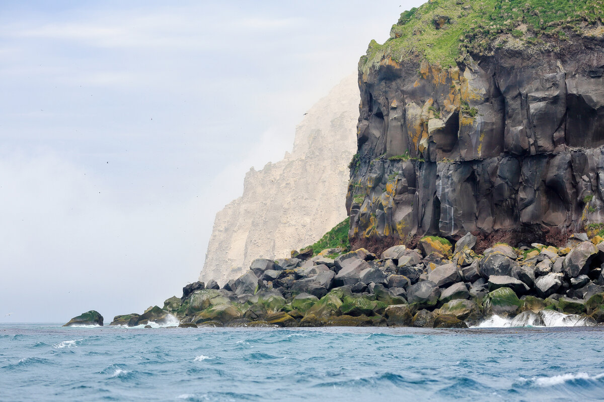 Но главное впечатление оставили не они, а невероятная красота острова. Пока мы его огибали, туман рассеялся, сквозь тучи пробилось солнце и подсветило скалы.
