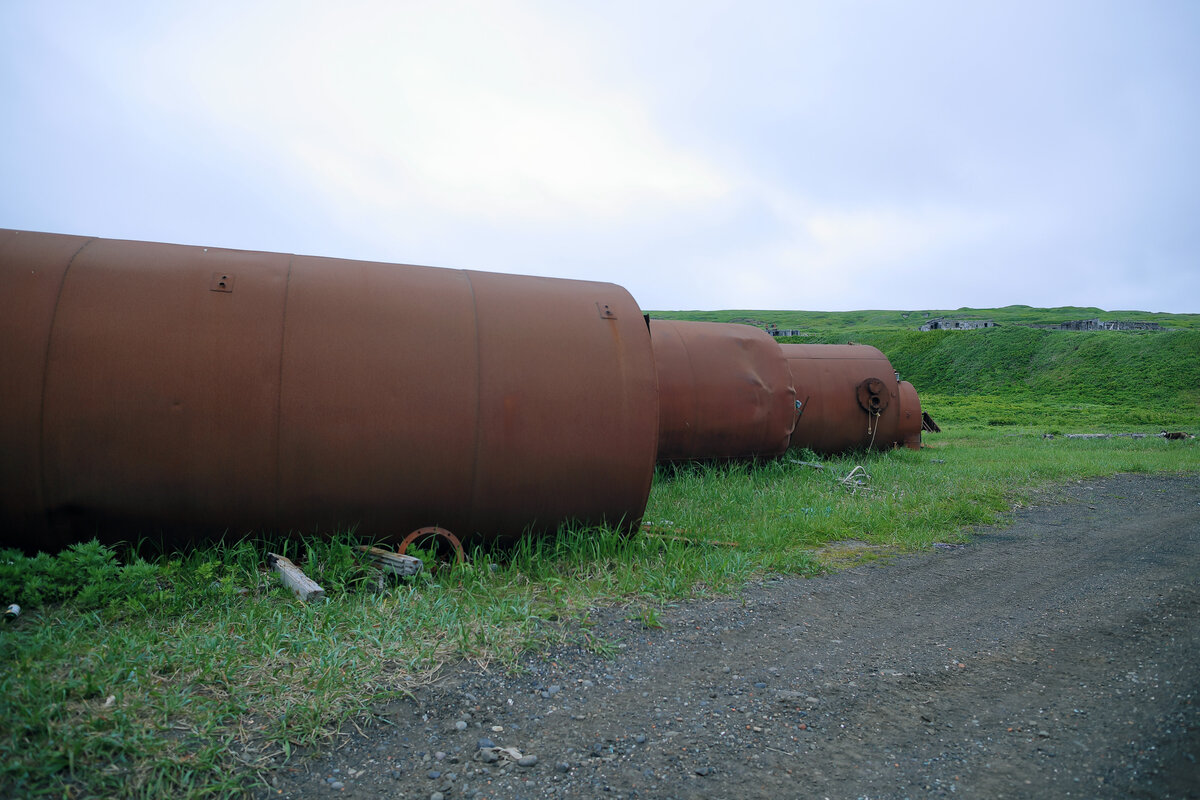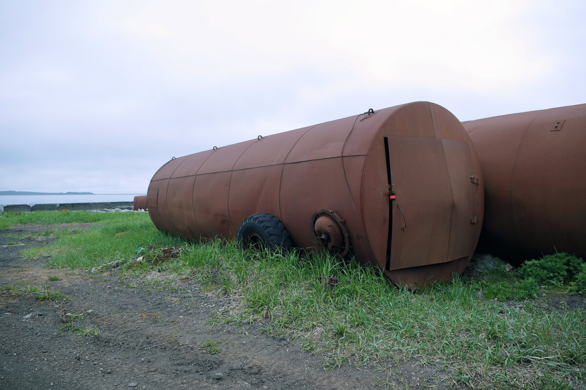 Брошенные ржавые цистерны нашли применение и обрели вторую жизнь: жители о.Парамушир вырезают в них двери и превращают в гаражи для своих снегоходов и квадроциклов.