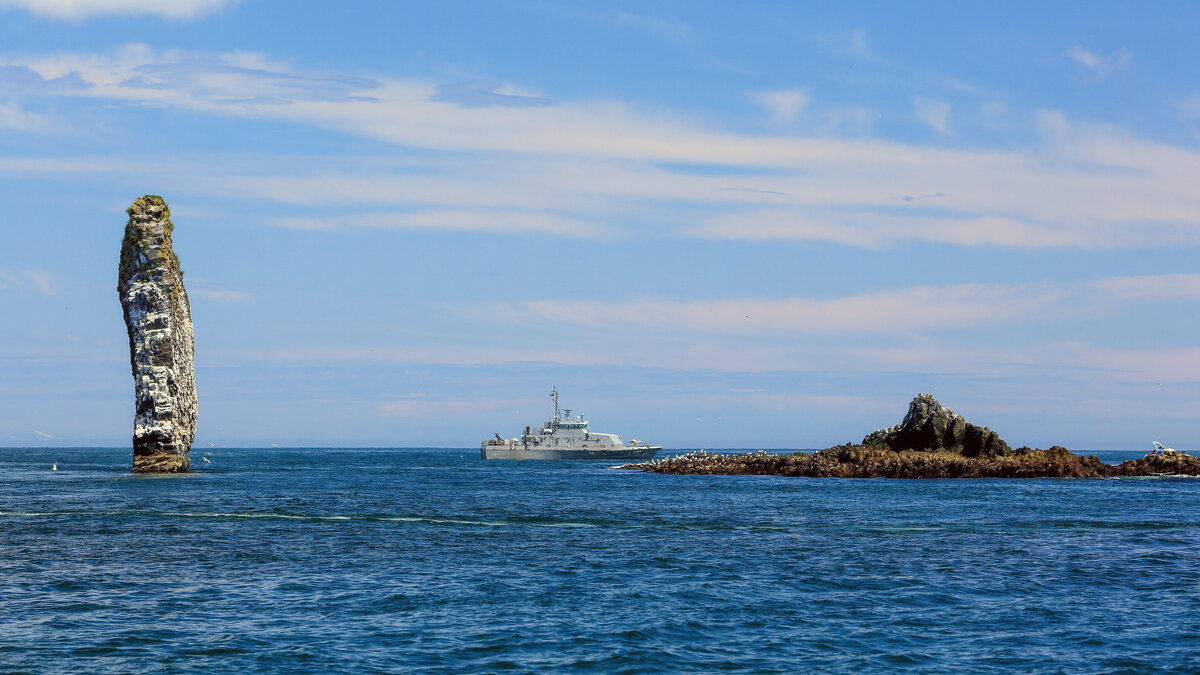 В тот день мы должны были пройти мимо острова Анциферова с его птичьими базарами и лежбищами сивучей.
