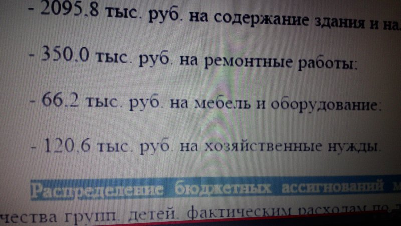 Ну это точно не заведующая и родители должны думать о финансах на подобные действия. Сады государственные, соотв. государство и должно фин-ть, а не подставлять заведующих и директоров...надо освещать вопрос как он есть... не хватает бюджета-так и говорить. Люди не дураки-поймут ситуацию. А так, как складывается сейчас информирование и ведёт к разного рода жалобам, ругани, недопониманию и ь.д.