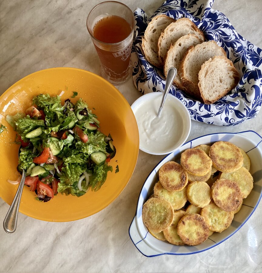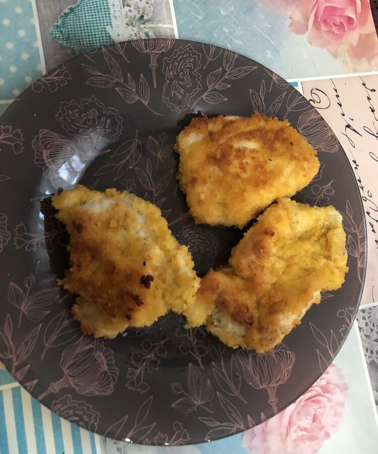 Посолила Адыгейской солью, потом обваляла в кукурузной муке и обжарила - супер вкусная корочка! Соус - сметана, горчица, чеснок