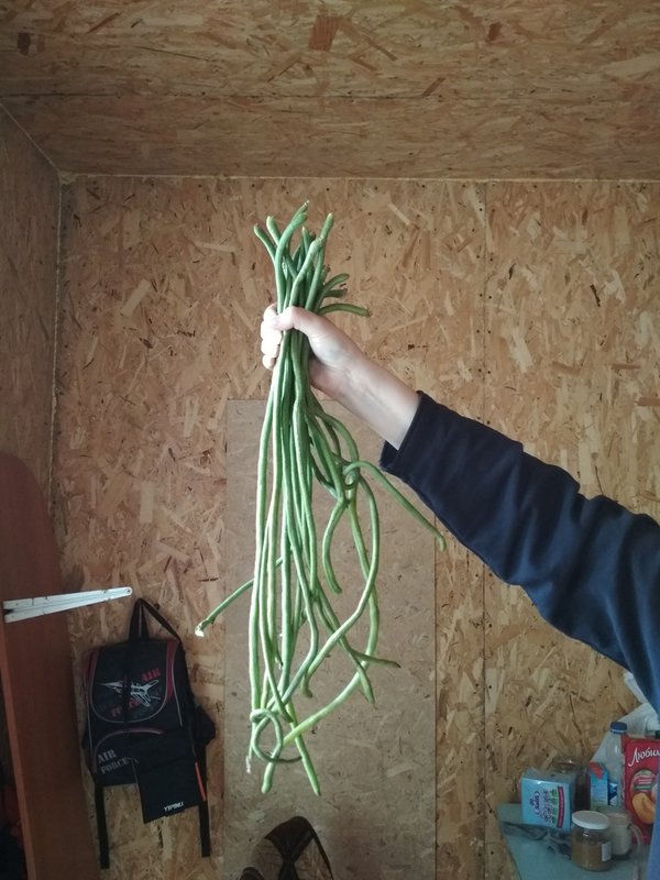 У меня такие длинные стручки-вигна выросли в теплице.