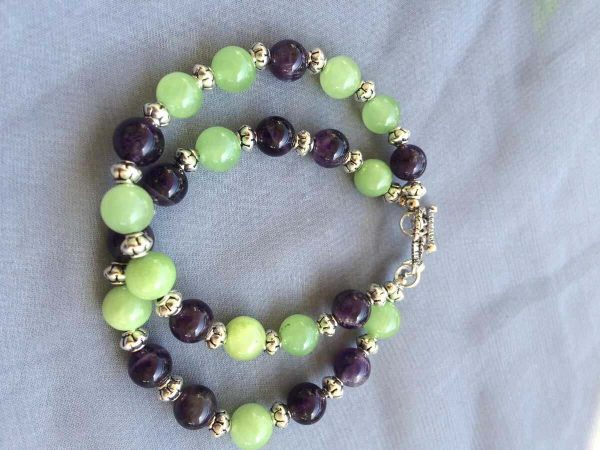 И ещё был выполнен небольшой заказ из аметиста - двусторонний кулон-сердце на длинном подвесе из бусин аметиста и чешских бусин