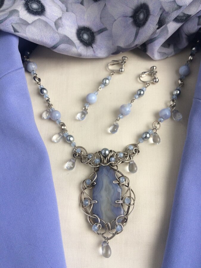 Такой комплект с голубым агатом (сапфирином) создала для себя. Дооолго он создавался... но результат результат радует! |