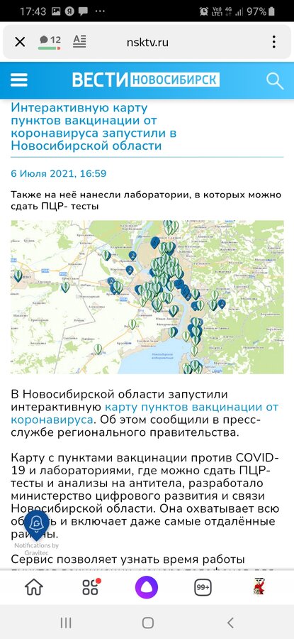 Министерство цифрового развития и связи Новосибирской области разработало интерактивную карту с пунктами вакцинации против COVID-19 в нашем регионе. Также на карту нанесены лаборатории, где можно сдать ПЦР-тесты и анализы на антитела.