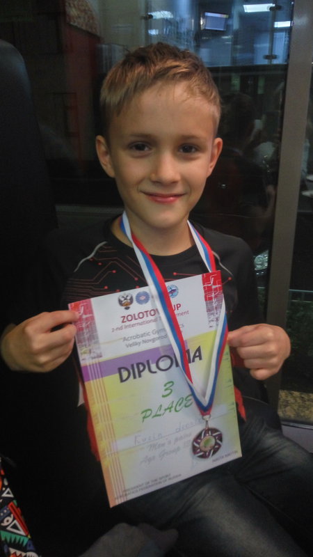 Лёню встретили вчера из Великого Новгорода с международных соревнований с третьим местом