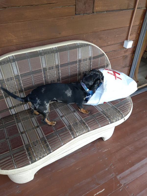 Девочки, а у меня уже новое фото появилось. Подружка случайно момент засняла. Я, конечно, в шоке была. Но слава Богу все обошлось. В общем, пёсик в очередной раз удивил.