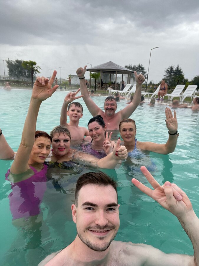 Взяли машину, везде сами, вчера были на новых термисточниках называются Амра, там не сероводород, а говорят радон, турки построили, бассейны с горячей водой, в дождь и испортившуюся погоду очень зашло)