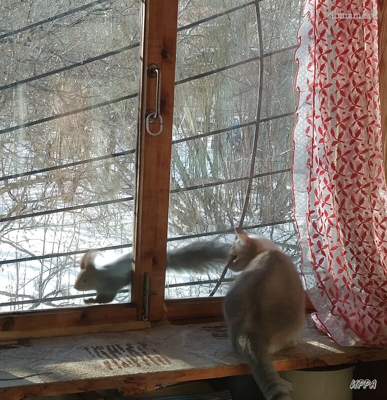 Вчера моя бестолковая кошка ловила белку на лоджии 🤦, ободрала тюль, напрыгалась до изнеможения, но мозги так и не включила. А белка за стеклом развлекалась по полной, у нее-то мозгов хватает, чтобы понять, что кошка ее не достанет. Сегодня моя балда сидит с утра на лоджии, ждёт белку очевидно
