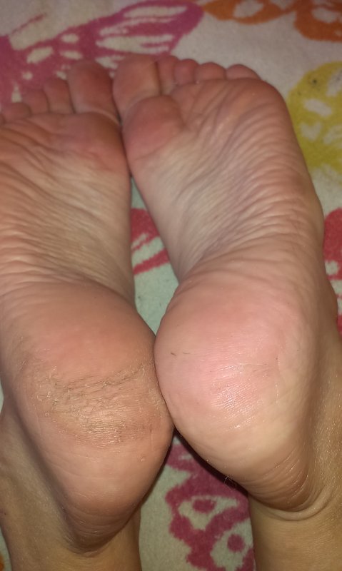 Потом еще маме пяточки обработали, на фото- одна после обработки, одна-до.