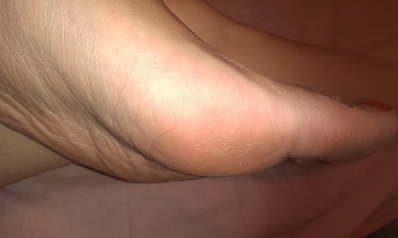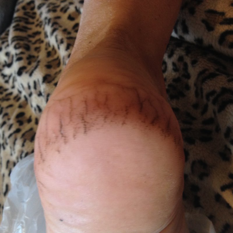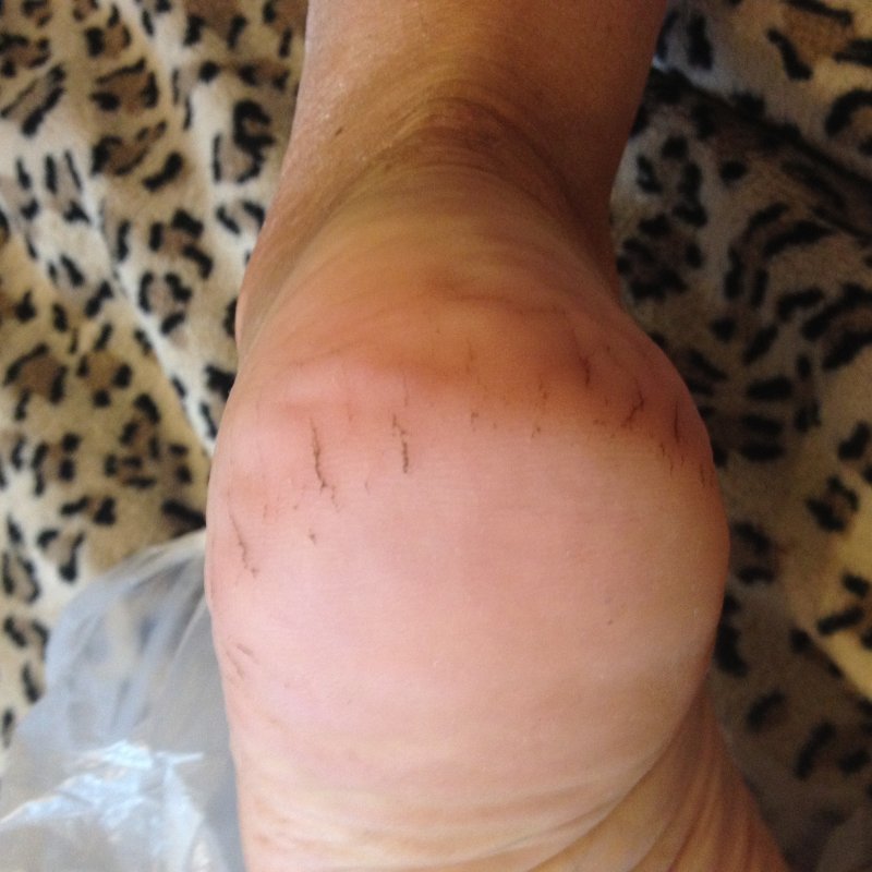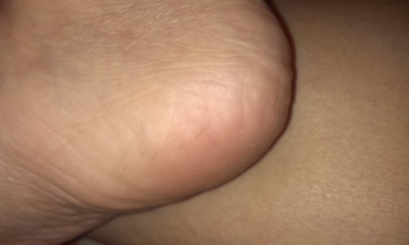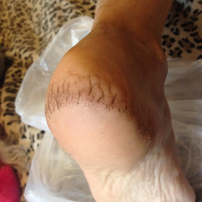 тут одна пяточка после обработки,вторая- еще нет.