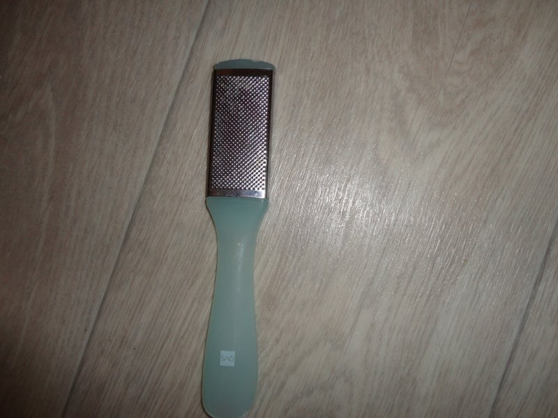 Певрый раз я обрабатывала проблемные места пемзой: маленько кожа скатывалась, но тереть пришлось довольно долго. Поэтому после следующей аппликации я использовала специальный инструмент (фото ниже), с ним дело пошло веселей. Здесь нужно быть аккуратным, потому как этот инструмент может повредить кожу, пемза же из комплекта значительно мягче и более щедяще воздействует на кожу. В общем, я чередовала пемзу и "тёрку".
