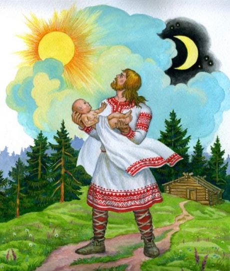 Между тем обычай окунать младенца в воду (или по крайней мере обрызгивать) на самом деле древнейший ритуал приобщения нового человека… Космосу. Да-да, ни больше ни меньше. Как это делалось? Отец – глава семьи – торжественно выносил новорожденного и показывал его Небу и Солнцу (не садящемуся, но обязательно восходящему – на долгую жизнь!), Огню очага, Месяцу (опять-таки растущему, чтобы дитя хорошо росло), прикладывал к Земле-Матери и, наконец, окунал в Воду (или обрызгивал, если было холодно). Таким образом малыша "представляли" всем Божествам Вселенной, всем её стихиям, отдавая под их покровительство.