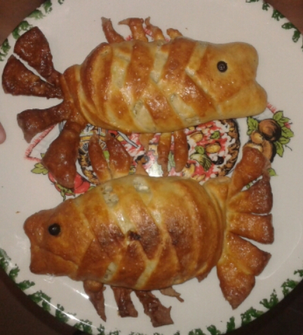 :-) ... Все надоело - выручила принцесска- пирог с обрезками рыбки+ лук, соль, перец черн, масло сливочное гр 30- мелко в рыбку --- (обрезки - солила свежую кету) , тесто слоеное без дрожжевое --- вкусно !!!