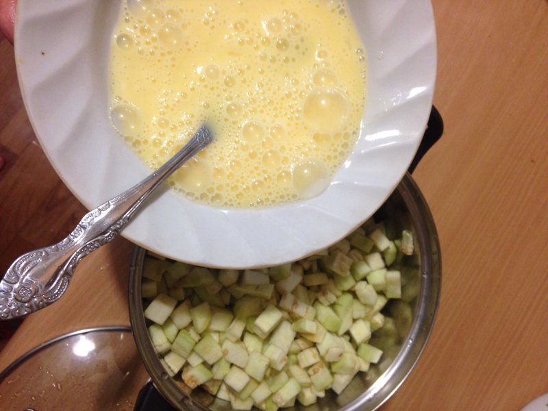 1. Баклажаны нарезаем небольшими кубиками и даем им постоять 30 минут, чтобы не было горечи.