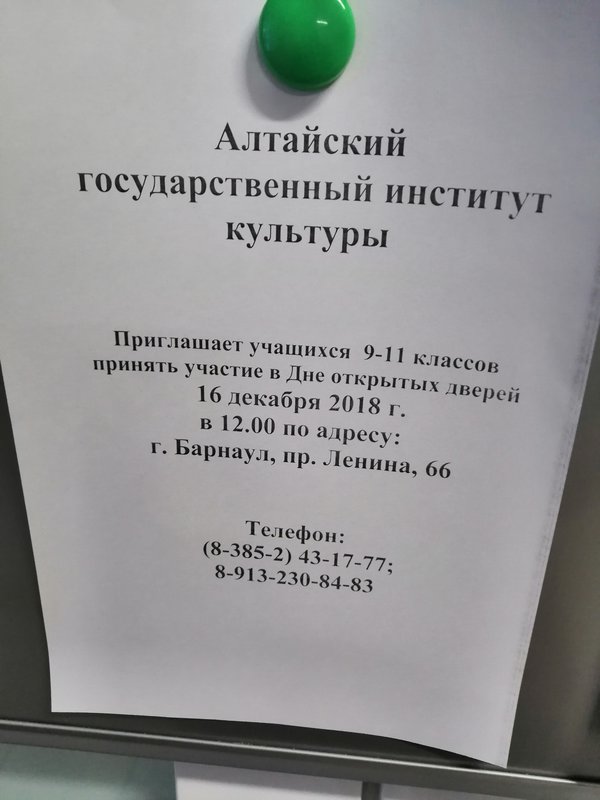Начало дня открытых дверей 20 января в 13.00 часов по адресу пр. Ленина, 46 . Более подробную информацию можно узнать по телефонам: (3852) 29-07-05 и 29-07-37.
