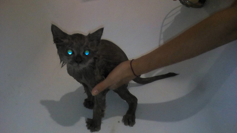 да уж такие страдальцы... наш на улицу выйдет и по лужам шпарит без всякого страха ( как-то подрался с соседским котом и видимо прямо в луже катался, домой пришел - вееесь черный , в грязи от ушей до хвоста), а в ванной - катастрофа ! Караул, мочат!