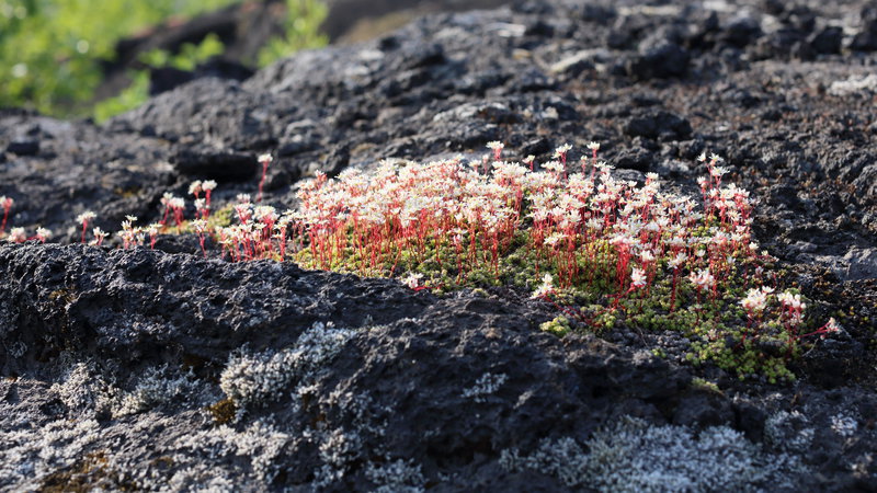В окрестностях пещер старые лавы уже поросшие тундровой растительностью