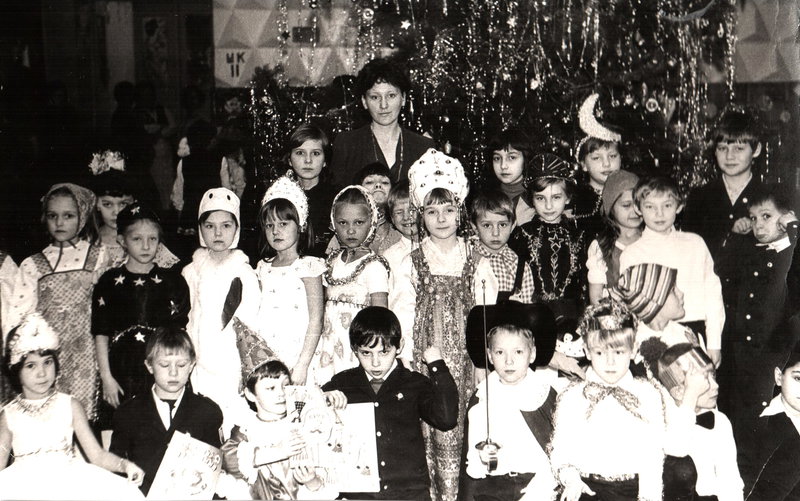 1982 г. Второе - первый нг в школе, я справа, рядом с Красной Шапочкой, Мушкетёром и Незнайкой без шляпы.. На мне - костюм Ночки, сшитый и украшенный моим папочкой!