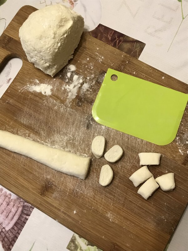 Все кроме муки венчиком перемешала, муку добавила, 3 колбаски раскатала, разрезала, обваляла. Сварила тоже 3 порциями ( вывела пропорцию одна пачка творога это одна закладка в кастрюлю и одна порция). В этот раз не сильно развалились.
