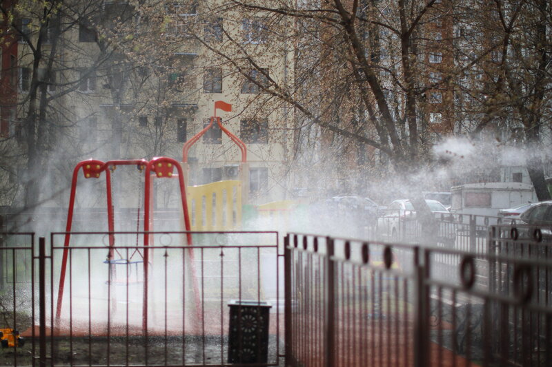 Это Москва. Вчера во дворах коммунальщики проводили дезинфекцию