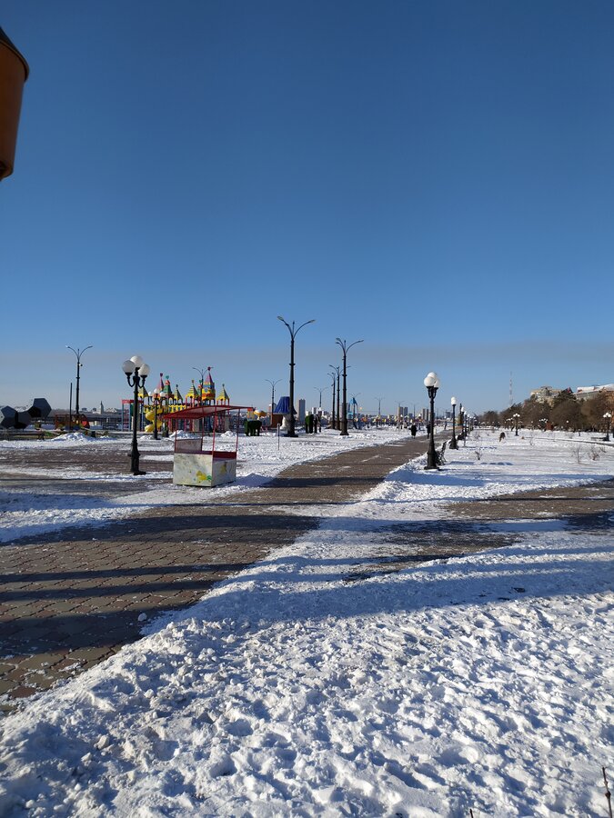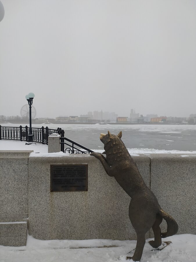 А берег реально в тумане, и даже смешно, что свой город ругаем за неубранный снег, а тут мы по сугробам прыгали.