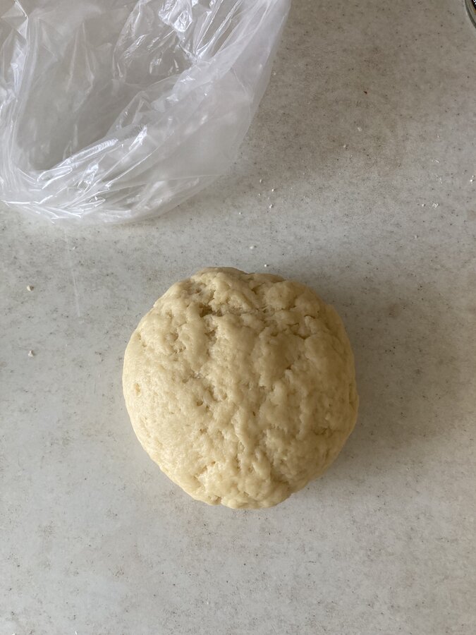 Это тесто тоже песочное, только вместо воды добавляю кефир и тесто становится более нежным.