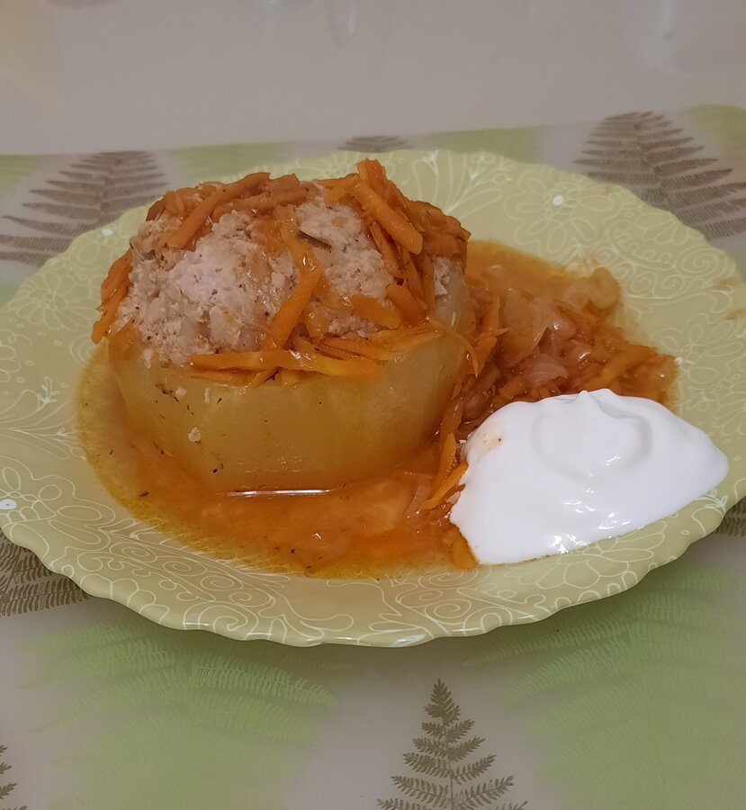 Начинка: фарш индейки + отваренный рис+ луковица (я перекручиваю, можно мелко нарезать, как вам привычней)+приправа для фарша+соль и перец по вкусу. Фарш можно любой, какой у вас в наличии.