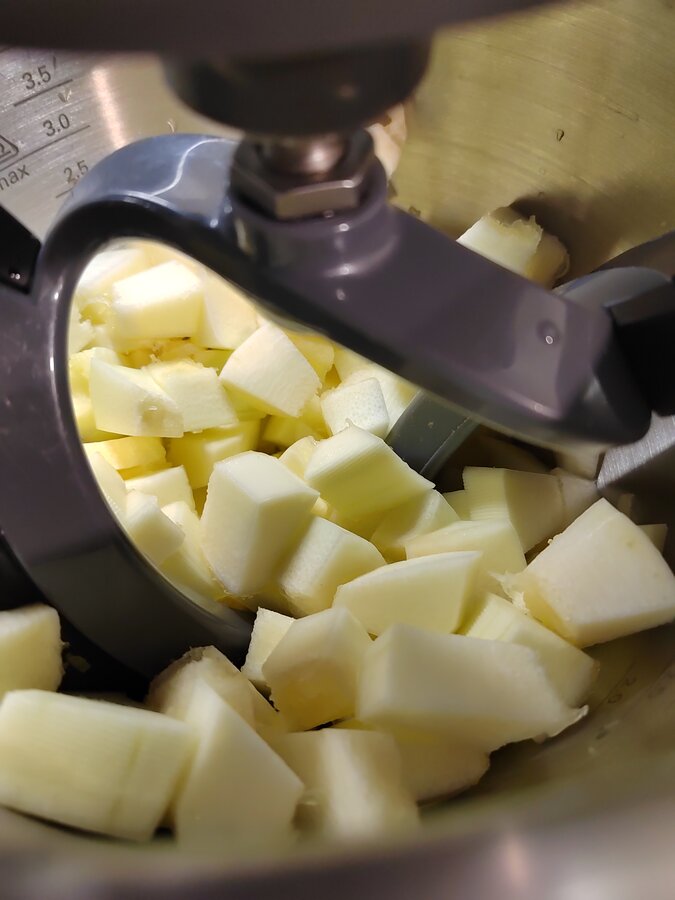 Я режу кусочками и в машину закладываю на 97 градусов прогреваю пока пюре не получится. Потом блендером пробиваю. Отдельно пюре не увариваю. Зимой просто из морозилки достаю , в холодильнике дифростирую и работаю