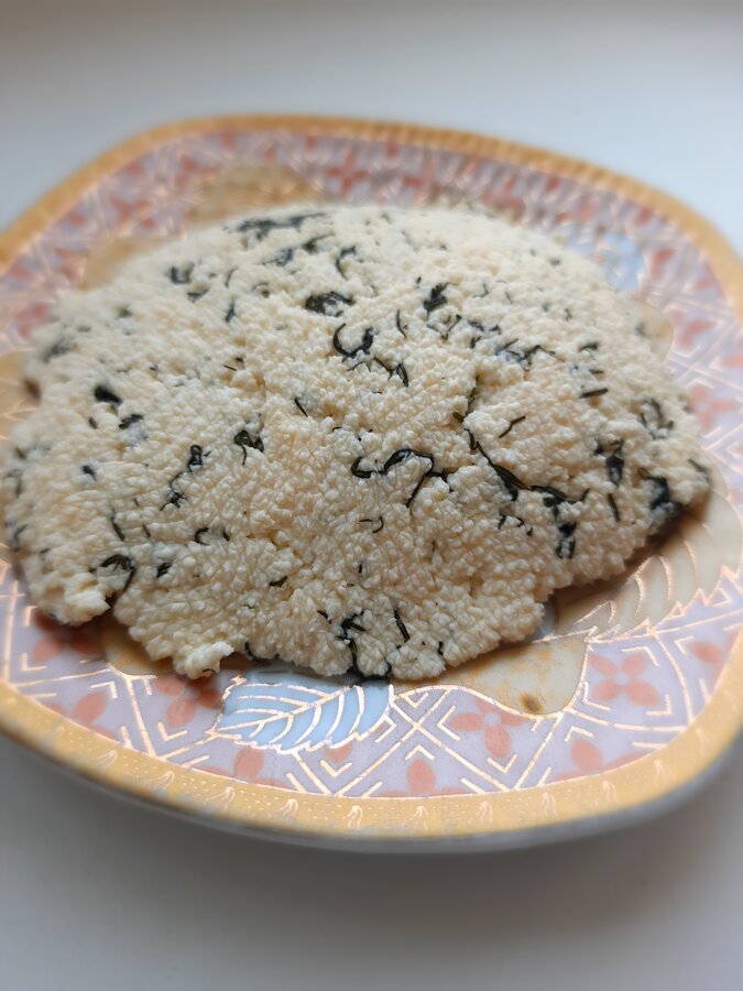 Убрать с огня и откинуть на дуршлаг. Мне сестра презентовала специальный - маленький друшлачок и подставочку под него. Дать оставшейся жидкости немного стечь, перевернуть сыр на подставочку, посолить, снова вернуть в дуршлаг и посолить.