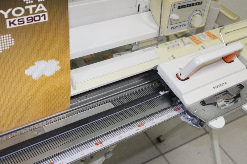 Попробовала нитки 1000м/100г при вязании двухфонтурного жаккарда-красотень. Правда, связала лишь образец. У меня главная трудность при освоении машины-хочется все узоры и приемы попробовать!