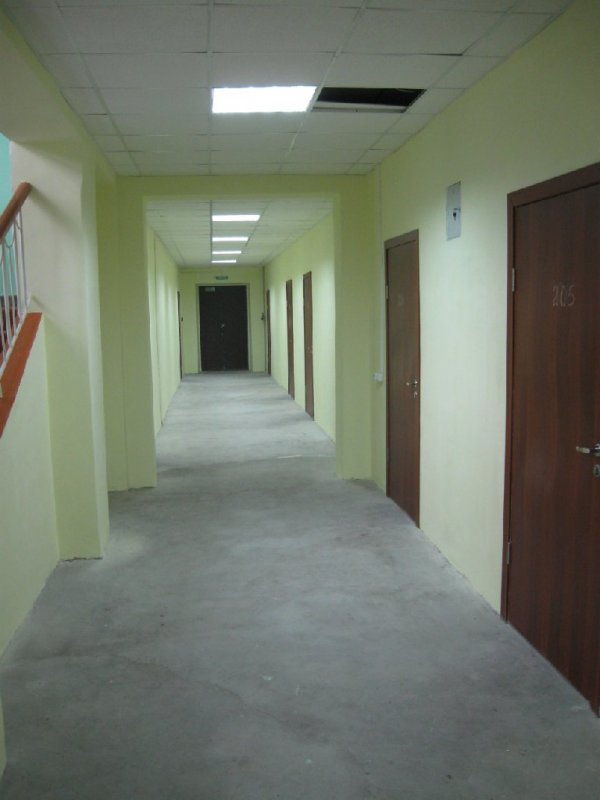 Отремонтированный коридор второго этажа девятого корпуса. Только без линолеума, но на четвертом этаже его уже положили