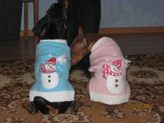 последняя фотка очень забавная Мне муж на нашу деваху тоже одежку напривозил и сапожки ))) Мы ее одели, а она сразу падает, как мертвая на бок, только ставишь ее на лапы - опять "БРЫК" ))). Так смешно ! Не знаю, как ее приучать к комбинезонам, ведь без них в холод зябковато будет. А сапожки надели, это вообще было что-то ))) Старший сын смеялся до рези в животе ).