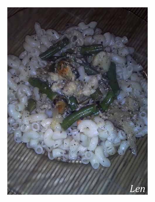 Макароны с мидиями и овощами