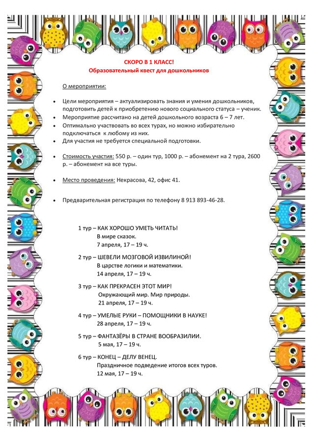 Приходите к нам знакомиться! На каникулах будут проходить мероприятия для гостей школы. Подробности можно получить по телефону 8-913-928-13-46 Мария Руслановна.