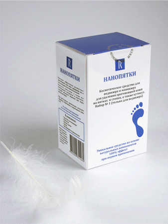 Набор "Нанопятки" упакован в компактную коробочку, оформление приятное - ничего лишнего, сразу понятно для чего предназначено средство (рисунок стопы ). Удобная пошаговая инструкция с иллюстрациями.