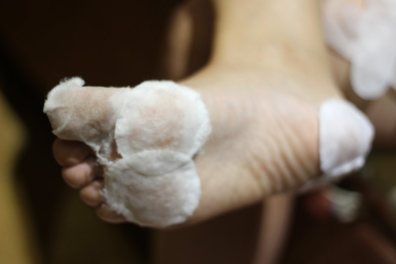 это ножки до процедуры в процессе после снятия дисков после всей процедуры, увлажненные ножки