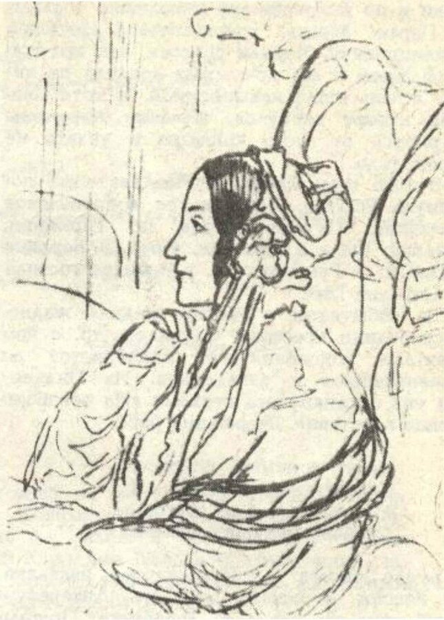 (К.К. Павлова. Рисунок Э. Дмитриева-Мамонова. 1848 г.)