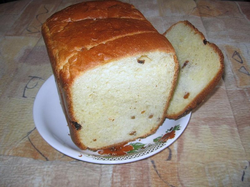 Только изюм я не сразу кинула и он плохо распределился по куличу.