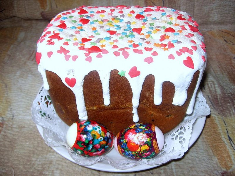 Вообщем, испекла я еще кулич. От первого к обеду уже только четвертинка осталась - сами ели, да соседей угостили. Но украсила я оба.